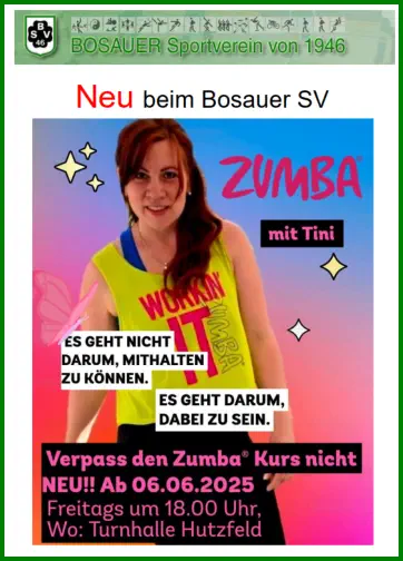 Zumba ist ein beliebtes Fitnessprogramm, das Tanz und Ausdauertraining miteinander verbindet. Es entstand in den 1990er-Jahren in Kolumbien und kombiniert vor allem lateinamerikanische Rhythmen wie Salsa, Merengue, Reggaeton und Cumbia mit einfachen Choreografien. Dabei steht nicht die perfekte Technik im Vordergrund, sondern die Freude an Bewegung und Musik.